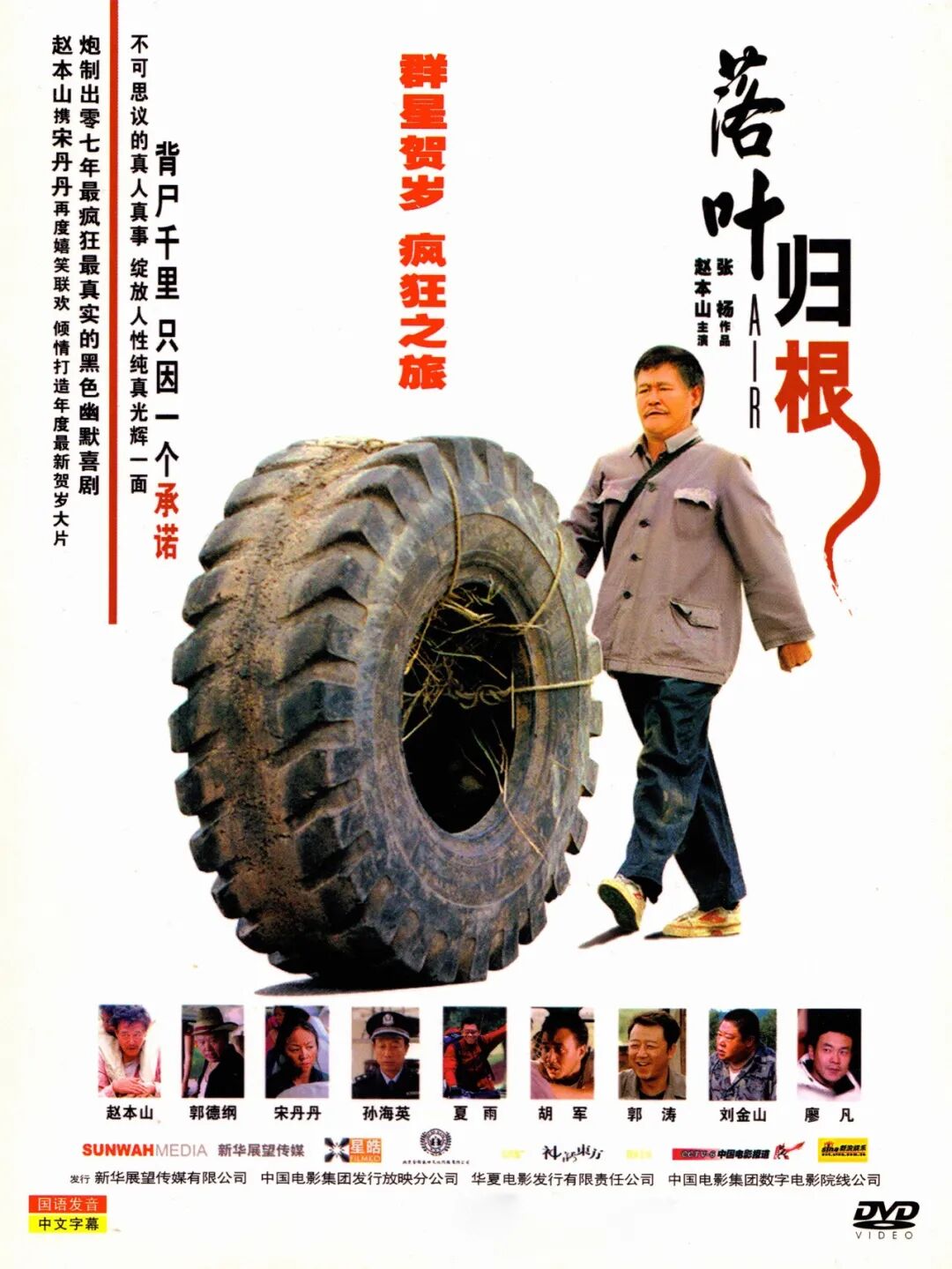 电影海报中,赵本山推着一个旧轮胎大跨步的走,很精神;可轮胎里装着饰演尸体的演员,一个镜头拍7遍,人都滚吐了。