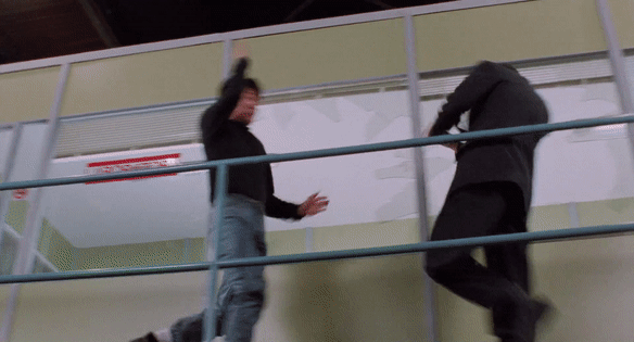 1987年的《东方秃鹰》中,洪金宝从高坡上,准确的跳到低处一辆行驶中的货车上,元华、元武等多位武师都尝试过,最后用钱嘉乐完成的版本;