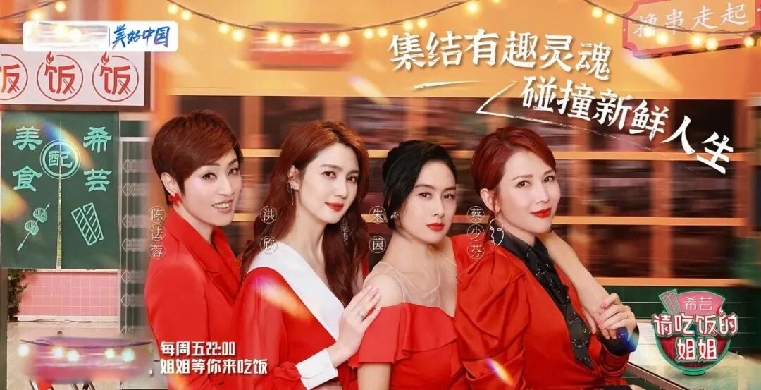 这次《请吃饭的姐姐》,是港普F4蔡少芬、陈法蓉、朱茵和洪欣,第一次全体集合。