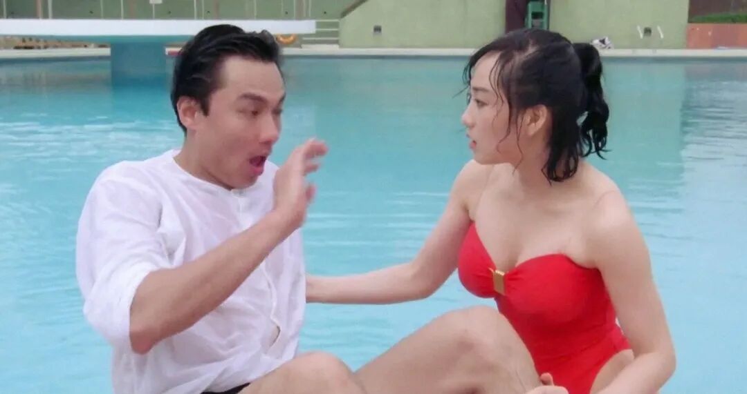 中间,王晶设计了一场泳池戏,利智、李嘉欣和陈法蓉都泳装出镜,大秀身材。
