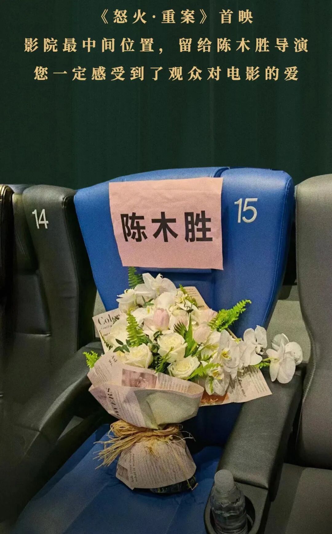 现场,主办方还专门把影厅最中间的位置,留给陈木胜,并送上鲜花,表达对他的敬意和怀念。