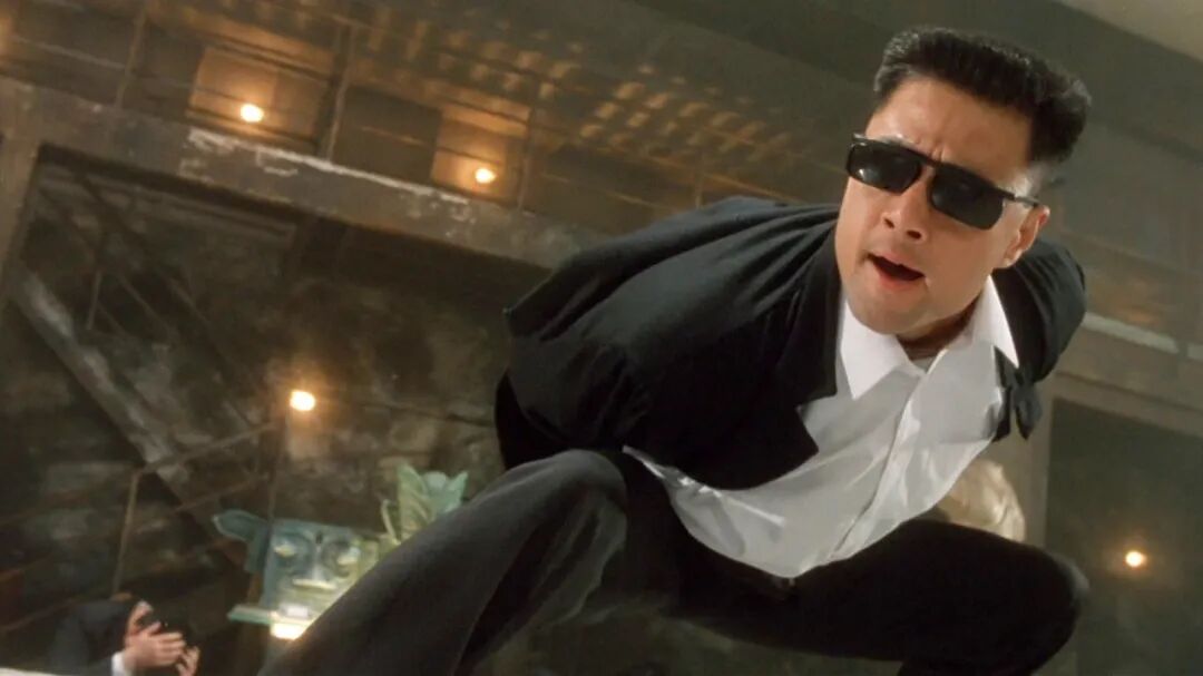 1996年,《冲锋队怒火街头》中的教授,是又一个把嚣张写在脸上的反派。刚刚出场时,还在电梯里秀了一把京剧,很显功底。