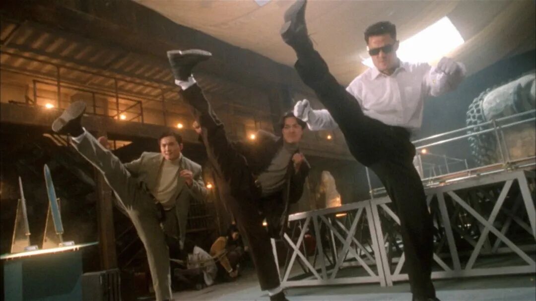 这个反派三人组,有一场精彩的三人一字马PK李连杰谢苗父子的群战大戏,是动作设计上的经典名场面。