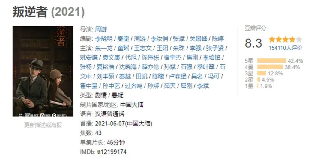 其实《叛逆者》和去年李易峰金晨主演的《隐秘而伟大》非常相似,都是发生在大上海的谍战故事,故事的主人公都是从菜鸟新人,一步步成长为优秀的谍战英雄,甚至连恋爱对象都是地下工作者。