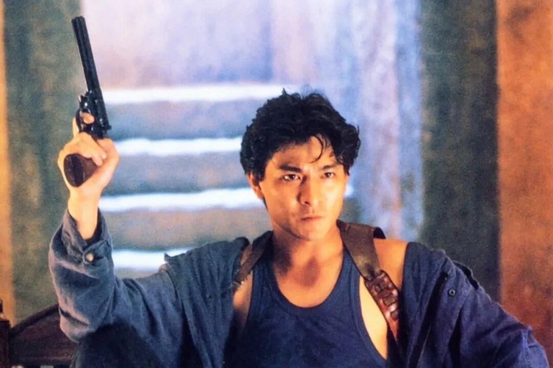 刘德华天幕电影的创业作品,就是金庸武侠小说的魔改现代动作电影《九一神雕侠侣》,1991年12月19日香港上映;由黎大炜、元奎执导,刘德华、梅艳芳、郭富城、刘嘉玲、钟镇涛等主演,编剧就是王家卫和刘镇伟。