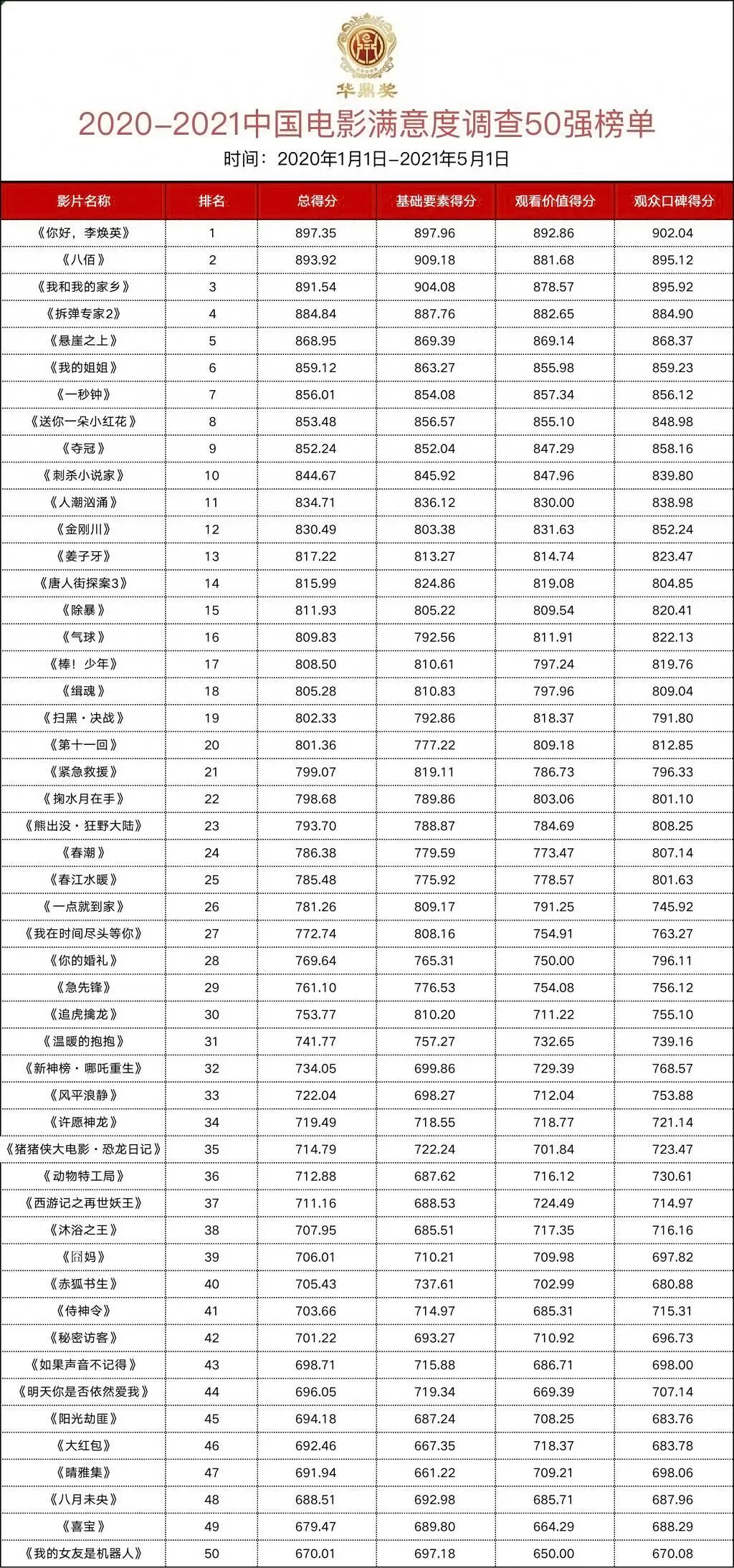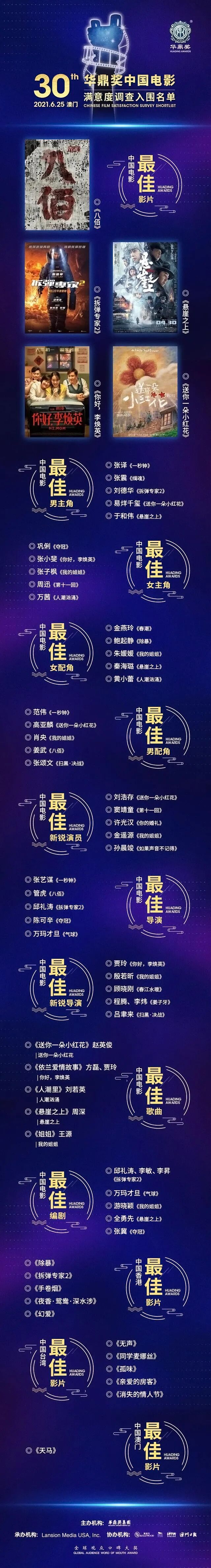 近日,第30届华鼎奖·中国电影满意度调查提名名单公布。