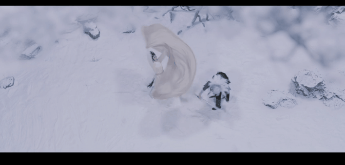 白素贞和许仙,在西湖断桥上相遇时,湖上一片云雾迷漫;最后,许仙走向雷峰塔,一片片荷花飞起,整个天空一片粉红;白素贞去往仙山盗仙草时,满眼都是茫茫的白雪,每一帧都壁纸级的美景。