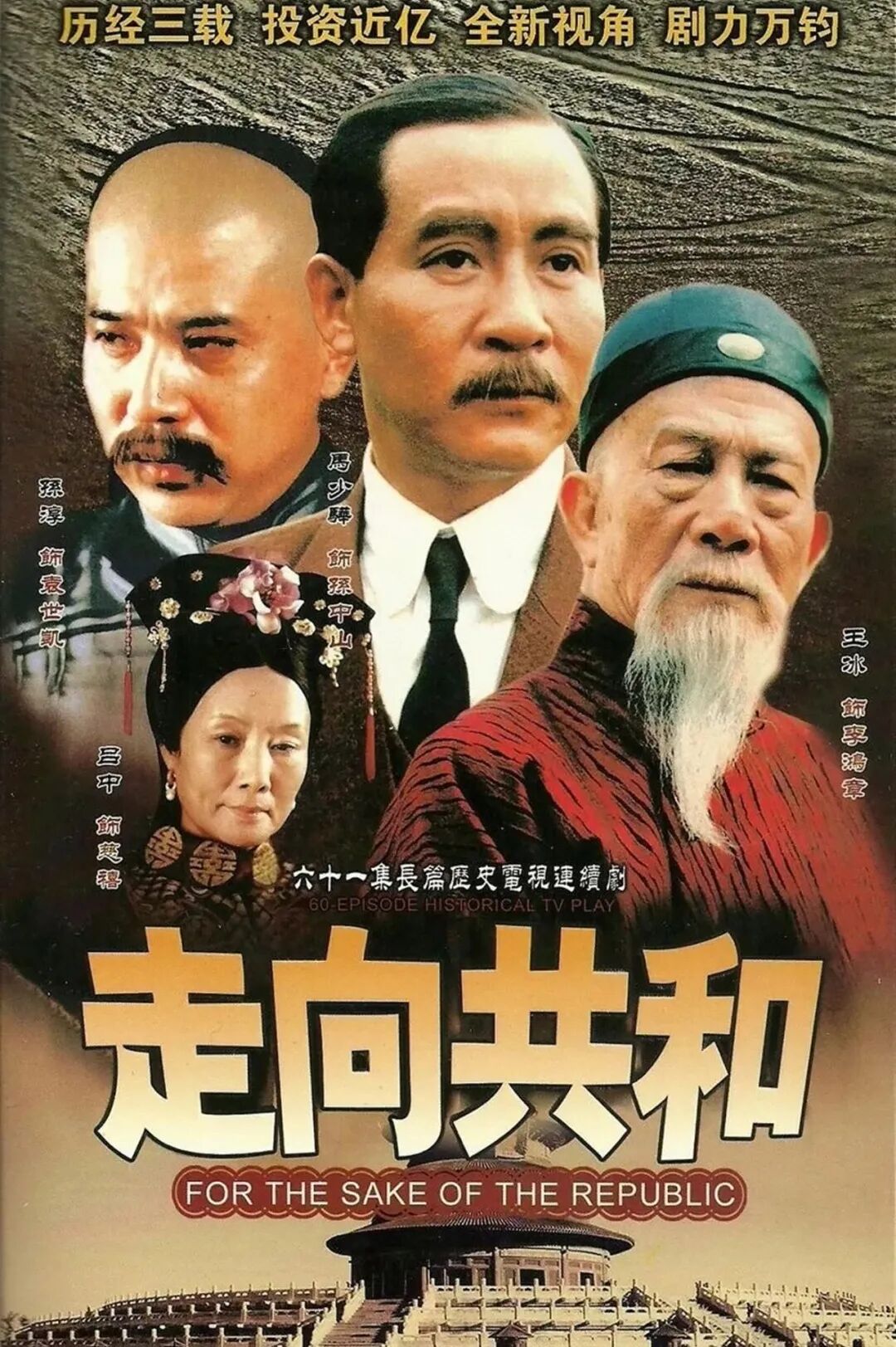 中国近代史题材电视剧《走向共和》,2003年4月12日在中央电视台一套首播,全剧59集,由张黎执导,盛和煜、张建伟编剧,王冰、吕中、孙淳、马少骅、李光洁、杨猛等主演。