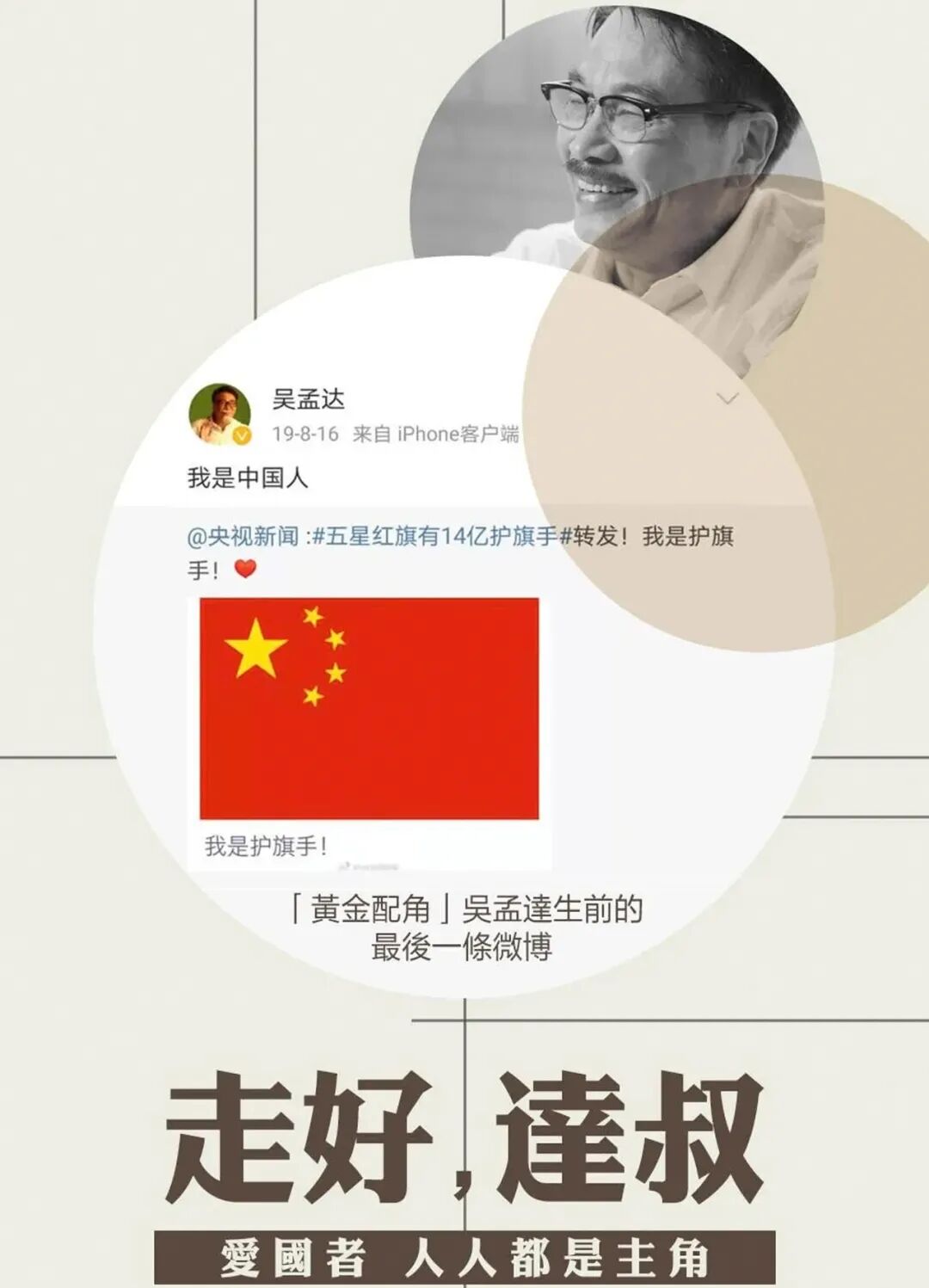 《人民日报》公众号对吴孟达的评价是:爱国者达叔,永远都是主角。