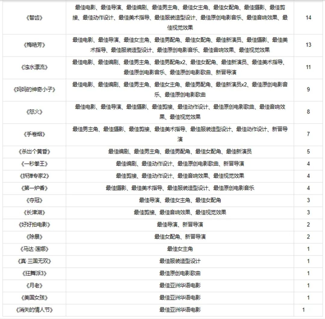 这届香港电影金像奖共设19个奖项,可是也仅有约70部电影竞逐提名,20部电影获得提名。