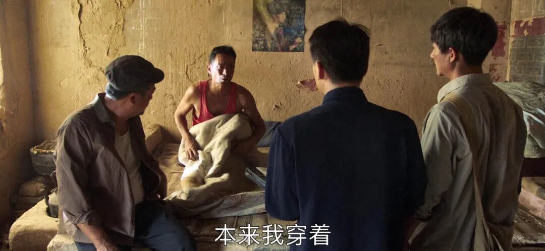 刚出场的一张剧照是他光着脚斜坐在炕上,动作、形态和全身统一的黑皮肤,除了壮一点,和90年代真正的农民完全一样。