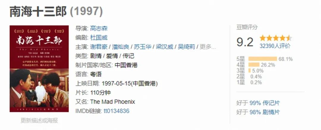 《南海十三郎》在豆瓣上9.2分,除了谢君豪影帝级的表演,它的成功主要还应该归功于编剧和导演。