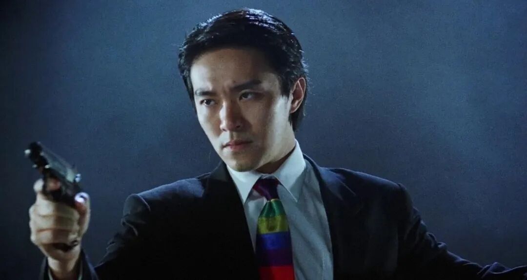 换上这个造型,凌凌漆拍了一个持枪摆POSE的旋转镜头,坚毅的眼神和完美的侧脸,正是周星驰颜值的巅峰。