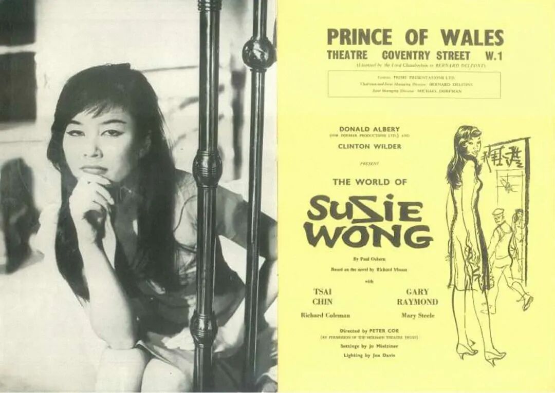 最开始,周采芹是在伦敦的戏剧圈和电影圈寻求发展,但1957年却是凭借一部舞台剧《苏丝黄的世界》打开知名度。这部剧连演了2年,商业上很成功,让周采芹名利双收,红遍英伦。