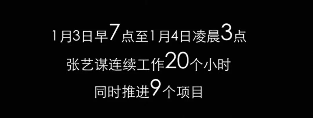 在2018年1月,张艺谋最忙的时期,连续工作20个小时,同时推进9个项目,