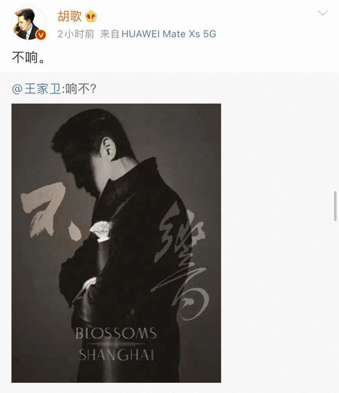 【《繁花》发布首张剧照:胡歌入坑王家卫,这次准备消失多久?】