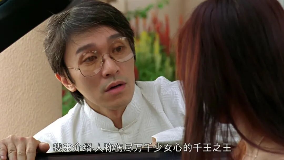 《行运一条龙》中,周星驰饰演的是茶餐厅的蛋挞王子何金水,用钱包装出来的情场浪子,其实是个泡不到妞的可怜虫。