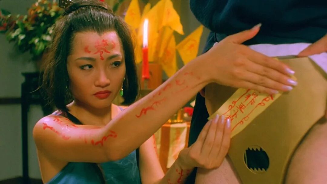 比如,在《大内密探之灵灵性性》中,杨玉梅饰演的是一个神经兮兮的鬼谷子后人,未央生(徐锦江)的夫人,专长房事科技研究,意外展现了她喜剧方面的才华。
