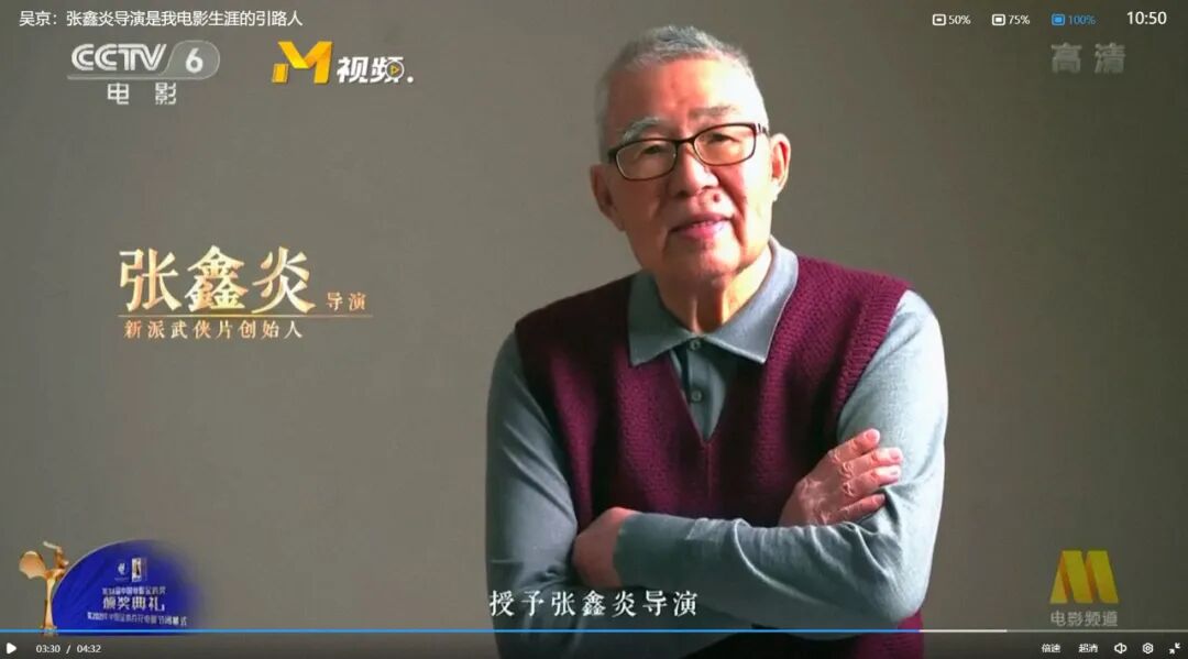 其中,吴京发表了对张鑫炎的致敬宣讲,称他是自己电影生涯的引路人。没到现场领奖的张鑫炎,在短片中发表了获奖感言,也回顾了他当年拍《少林寺》等电影的过程,以及发掘李连杰和吴京的经历。