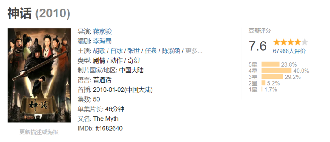 2005年电影《神话》6.8分,2010年电视剧《神话》7.6分
