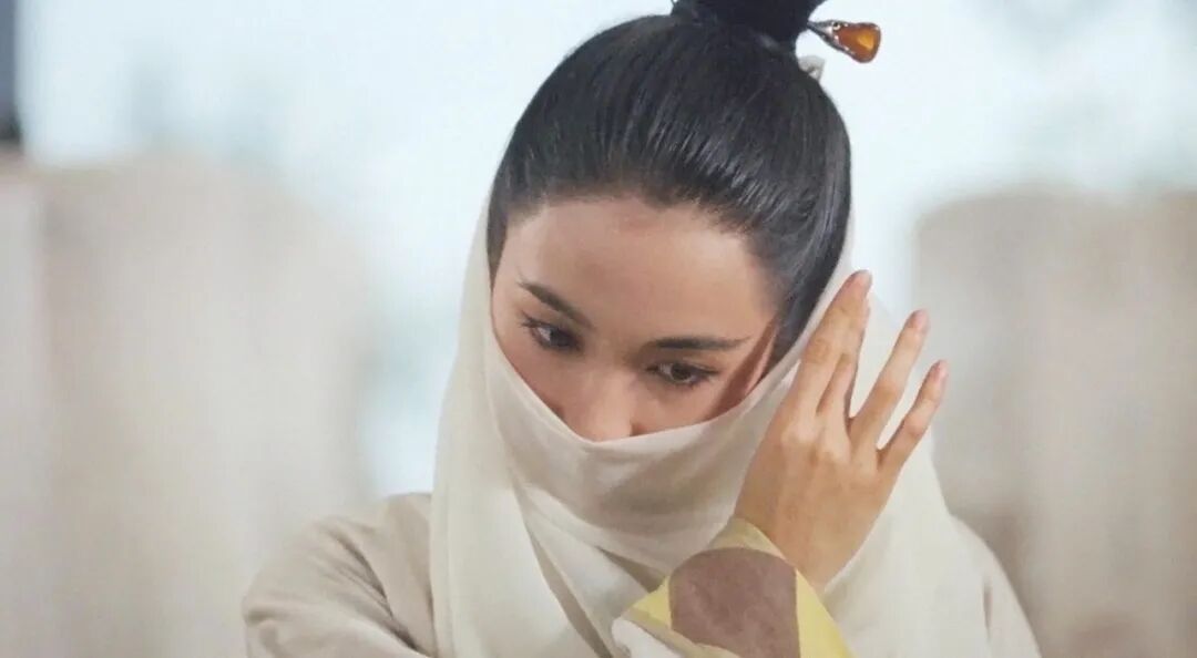她第一次出场是蒙着面纱来到武当,代师父灭绝师太取回倚天剑,在她解下面纱的一刻,武当众弟子看呆了,观众也看呆了,这绝对是女主角的颜。