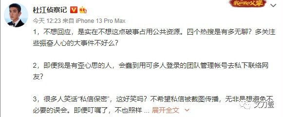 事件持续发酵下,杜江本人也坐不住了,只好发长文站出来解释。