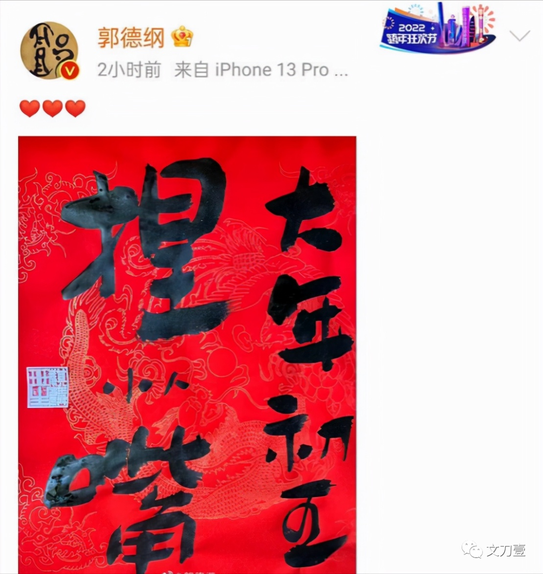 大年初五,郭德纲晒出一张书法作品,字为“捏小人嘴”。