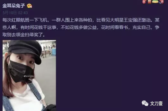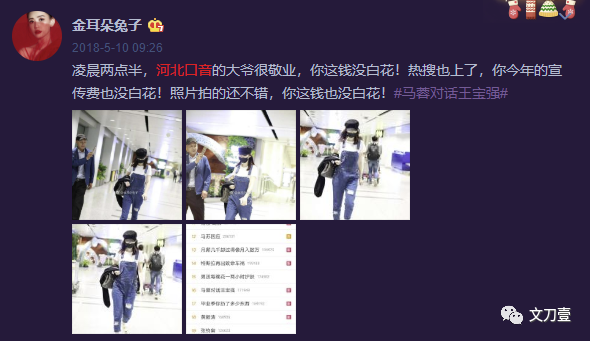 2018年5月,马蓉发文自己在机场被跟拍,还暗讽王宝强曾拿过“金扫帚奖”。