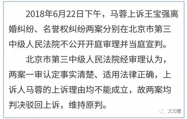 至于马蓉起诉王宝强侵犯名誉权案,法院驳回了马蓉的所有诉讼请求,维持原判。