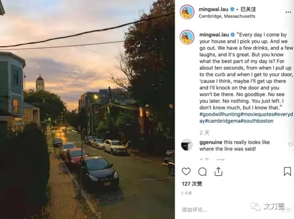 他在社交平台上发了一篇文章,引用《心灵捕手》中演员的一段对白,