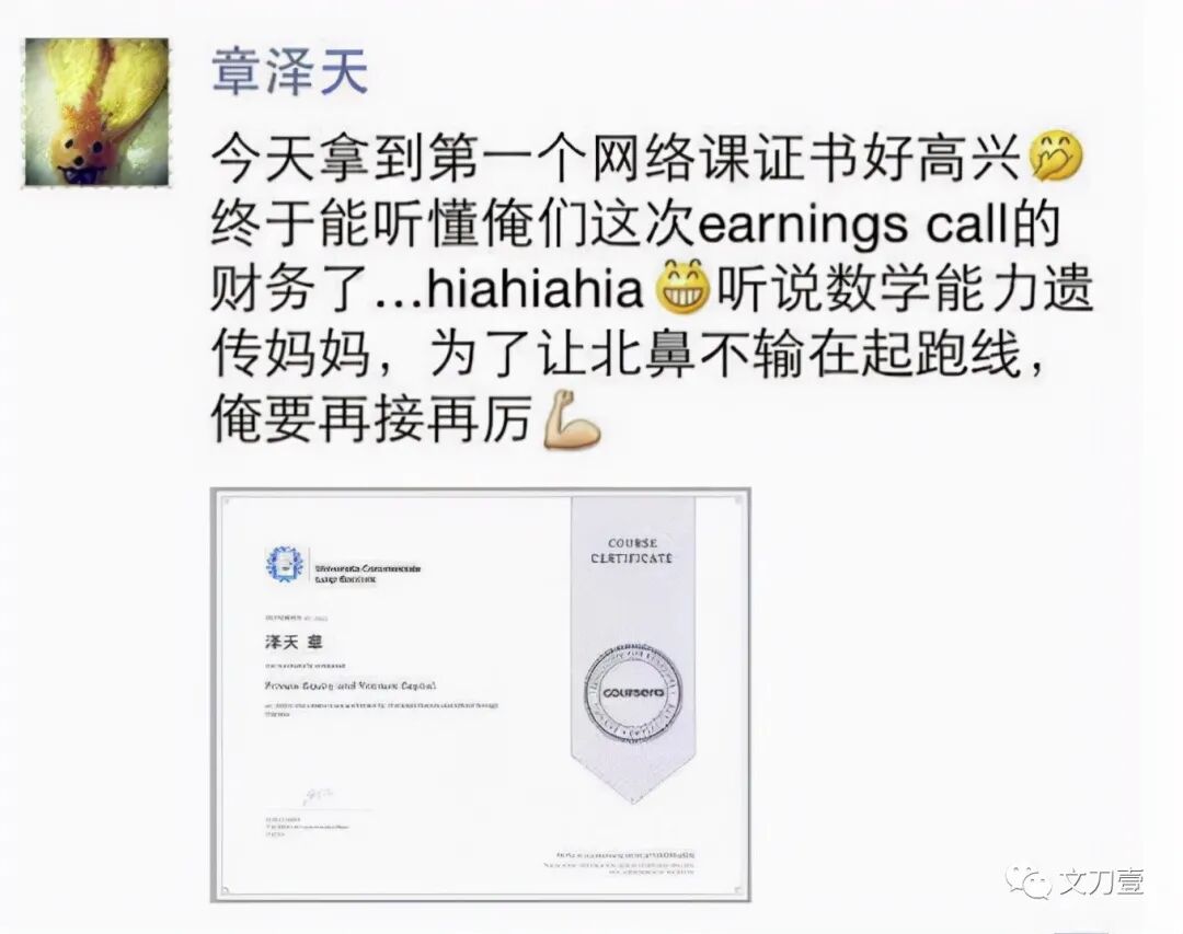她也拿下了意大利博科尼大学的“私募股权和风险投资”的课程证书。