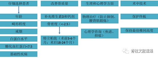 (五)手术技术是另一个重要的考虑因素。术中终板损伤增加了cage下沉风险。尤其对于因终板方向不平行而导致骨质疏松或退行性脊柱侧弯的患者应谨慎。