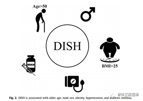 2. DISH病与高龄、男性、肥胖、高血压和糖尿病等代谢性异常有关;