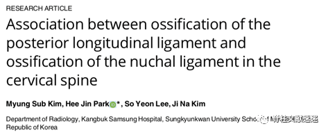 3.Kim MS, Park HJ, Lee SY, Kim JN. Association between ossification of the posterior longitudinal ligament and ossification of the nuchal ligament in the cervical spine. PLoS One. 2019 Nov 6;14(11):e0224729. doi: 10.1371/journal.pone.0224729. PMID: 31693687; PMCID: PMC6834259.