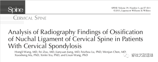 在确诊颈椎病时,MR的作用越来越大,门诊患者往往携带颈椎MR就诊,颈椎X线的作用似乎变小了。其实不然。颈椎X线片在判断颈椎曲度、骨质增生、间隙变窄、韧带骨化等方面仍有很大作用,其中项韧带骨化往往提示了颈椎退变的病变性质和责任节段。下面我们通过3篇文献进行回顾。