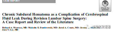 1.WawroseRichardA,DombrowskiMalcolmE,CrastoJaredAetal.ChronicSubduralHematomaasaComplicationofCerebrospinalFluidLeakDuringRevisionLumbarSpineSurgery:ACaseReportandReviewoftheLiterature.[J].HSSJ,2020,16:482-484.