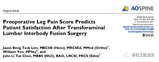 文献三:术前腿痛评分可预测腰椎融合手术后的患者满意度