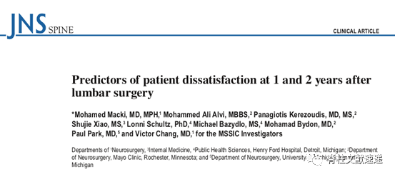 文献1:腰椎手术后1年和2年患者不满意的预测指标