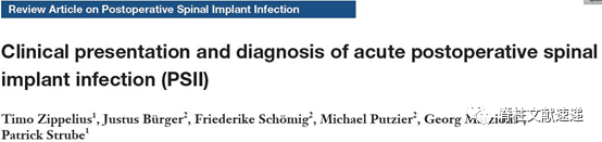 1. Schmig F , Putzier M . Clinical presentation and diagnosis of delayed postoperative spinal implant infection[J]. Journal of Spine Surgery, 2020, 6(4):772-776.