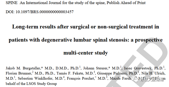 最后作者得出结论:因退行性腰椎管狭窄接受手术的患者较非手术治疗的患者,临床疗效更佳,且长期持续有效。