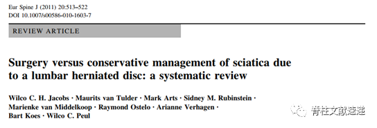 笔者注:由这几篇文献我们可以看出,腰椎退行性变的的最佳治疗策略仍存在争议,大部分研究证明对于保守治疗不成功的腰椎退行性变的患者而言,手术治疗的治疗效果要优于非手术治疗,但也有少部分文献得出了相反的结果,这可能和多方面有关,如对治疗成功的定义不同等。因此,未来的研究更应该着重评估哪些患者能够从手术中受益更多,哪些患者能够从保守治疗中受益,从而帮助我们更好地为患者制定最佳治疗方案。