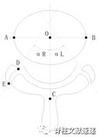 图2.测量椎间小关节角度的方法示意图。椎间小关节平面线在每个上关节面(D和E)的2个峰之间的连线。中线为穿过腰椎椎体的中心(O,AO = OB)和棘突根部的中点(C)之间的连线。测量腰椎体每一侧的矢状中线和小关节平面线之间的角度(αR=右测小关节角,αL=左测小关节角)。椎间小关节角度FO=(αR+αL)/ 2; 双侧椎间小关节对称性差异FT=|αR-αL|。