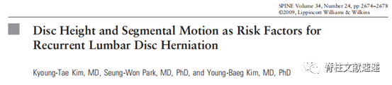 2.Kim KT, Park SW, Kim YB. Disc height and segmental motion as risk factors for recurrent lumbar disc herniation. Spine (Phila Pa 1976). 2009;34(24):2674-2678.