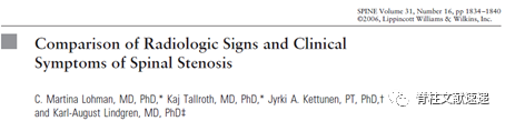 1、Weber C , Giannadakis C , Rao V , et al. Is There an Association Between Radiological Severity of Lumbar Spinal Stenosis and Disability, Pain, or Surgical Outcome?[J]. Spine, 2016, 41(2):E78-E83.