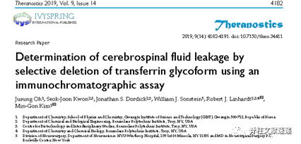 3. Oh J1, Kwon SJ, Dordick JS, Sonstein WJ, et al. Determination ofcerebrospinal fluid leakage by selective deletion of transferrin glycoformusing an immunochromatographic assay[J].Theranostics. 2019 May31;9(14):4182-4191.