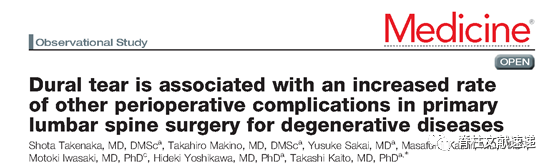 文献一:硬脊膜撕裂与腰椎手术治疗退行性疾病的围手术期并发症发生率增加有关