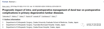 文献二:腰椎手术中偶然的硬膜撕裂:危险因素和解剖位置