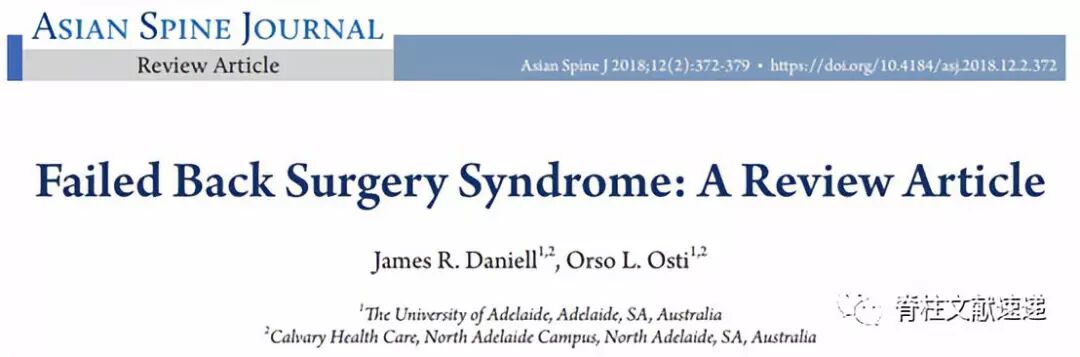 1. Daniell J R , OstiO L . Failed Back Surgery Syndrome: A Review Article[J]. Asian Spine Journal,2018, 12(2):372-379. [PMID: 29713421;https://www.ncbi.nlm.nih.gov/pubmed/ 29713421]
