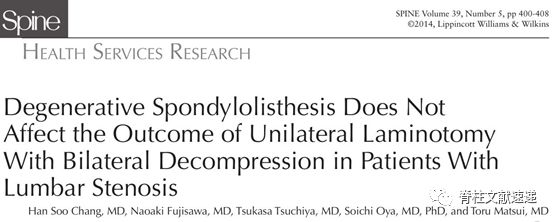 文献2:退行性腰椎滑脱不影响单侧椎板切开+双侧减压治疗腰椎管狭窄症的疗效