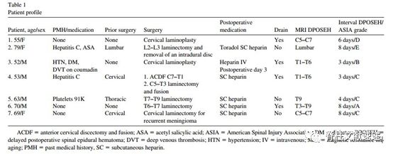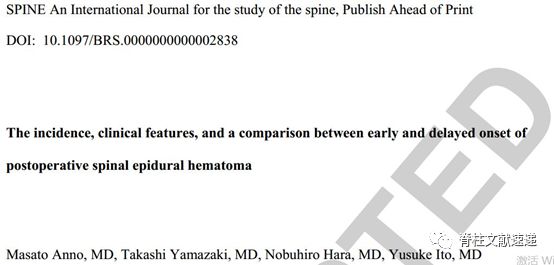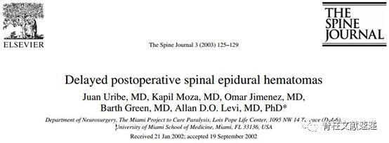 文献1:脊柱硬膜外血肿的发生率、临床特点及术后早期与迟发性血肿的比较